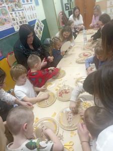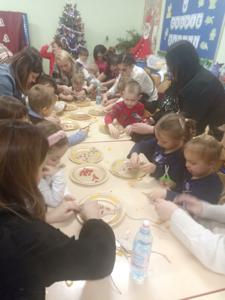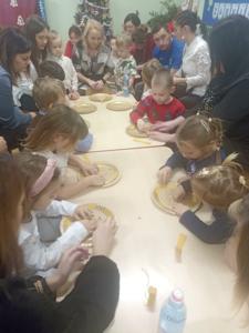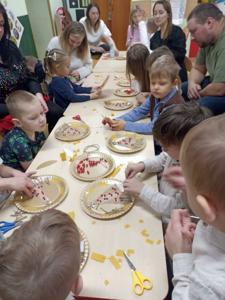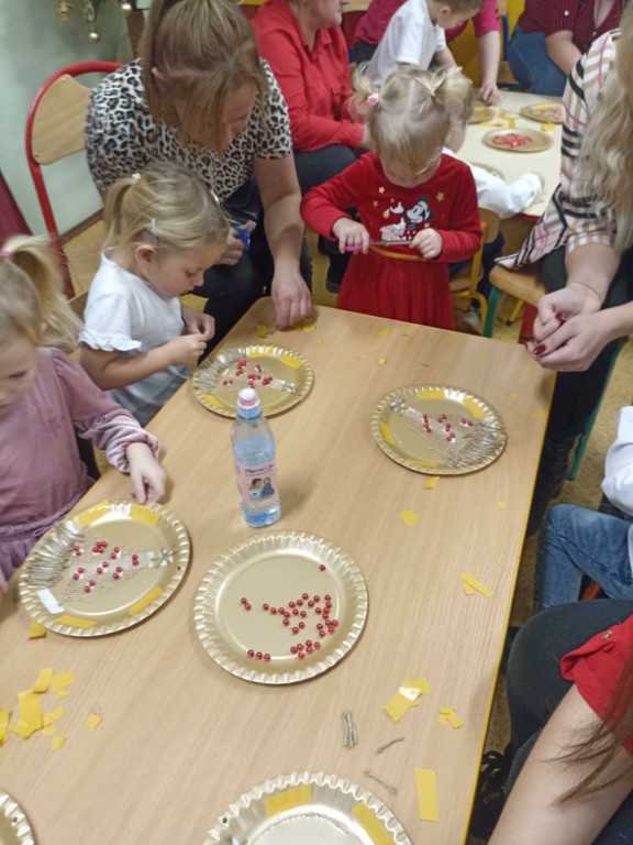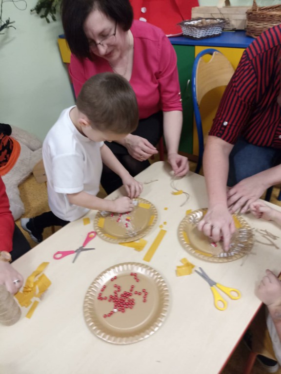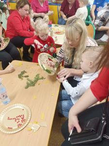 Odbyły się również warsztaty bożonarodzeniowe. Dzieci wspólnie ze swoimi rodzicami wykonały dekorację świąteczną, która będzie ozdobą w ich domach.
