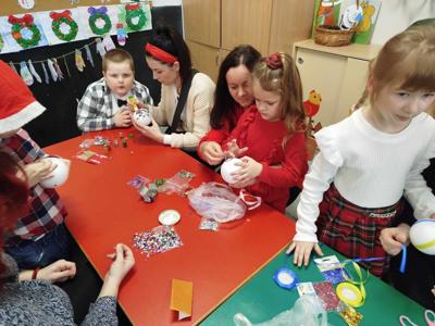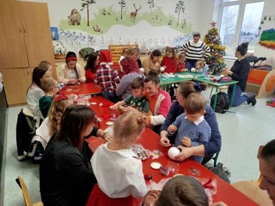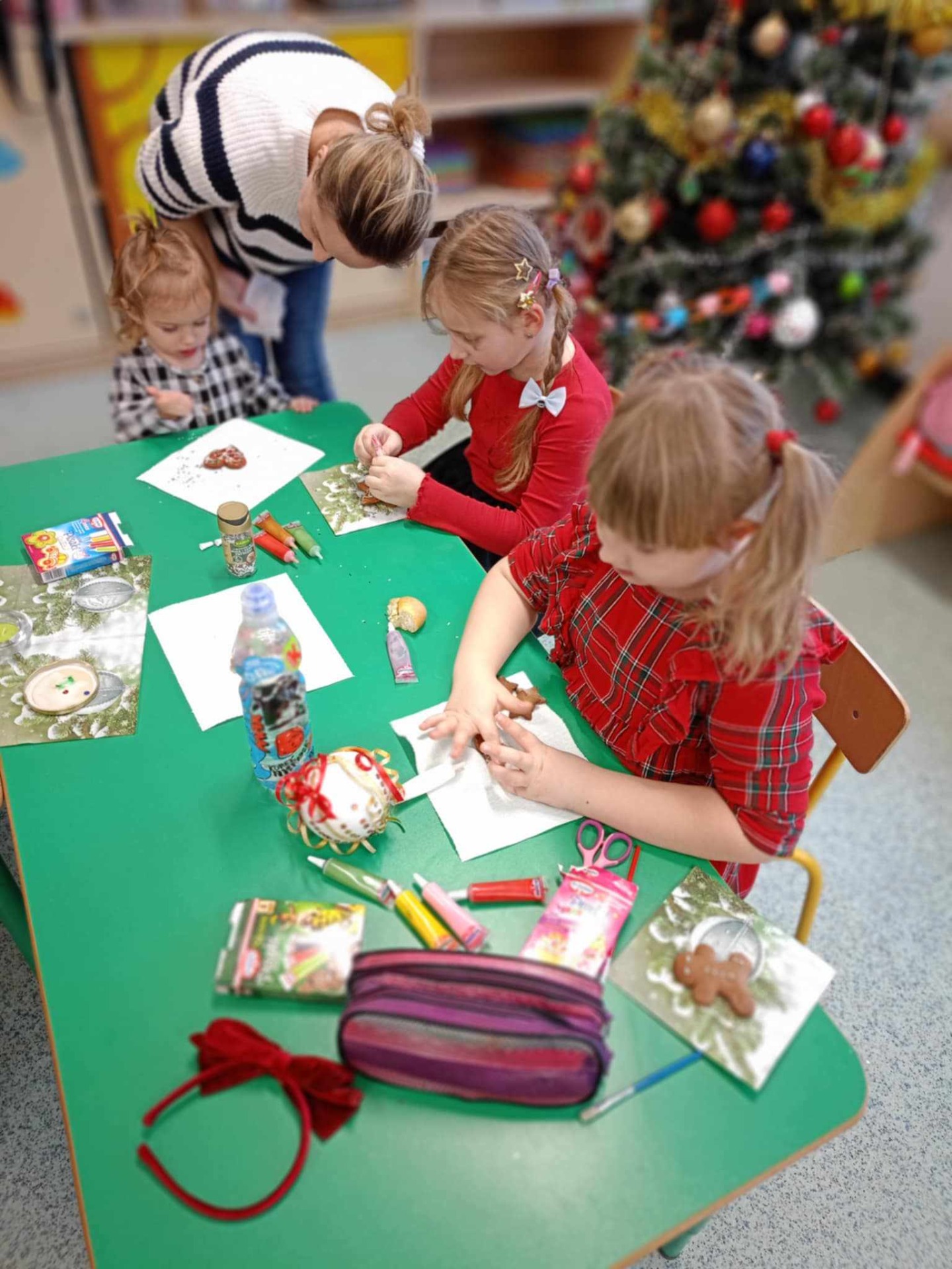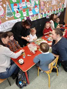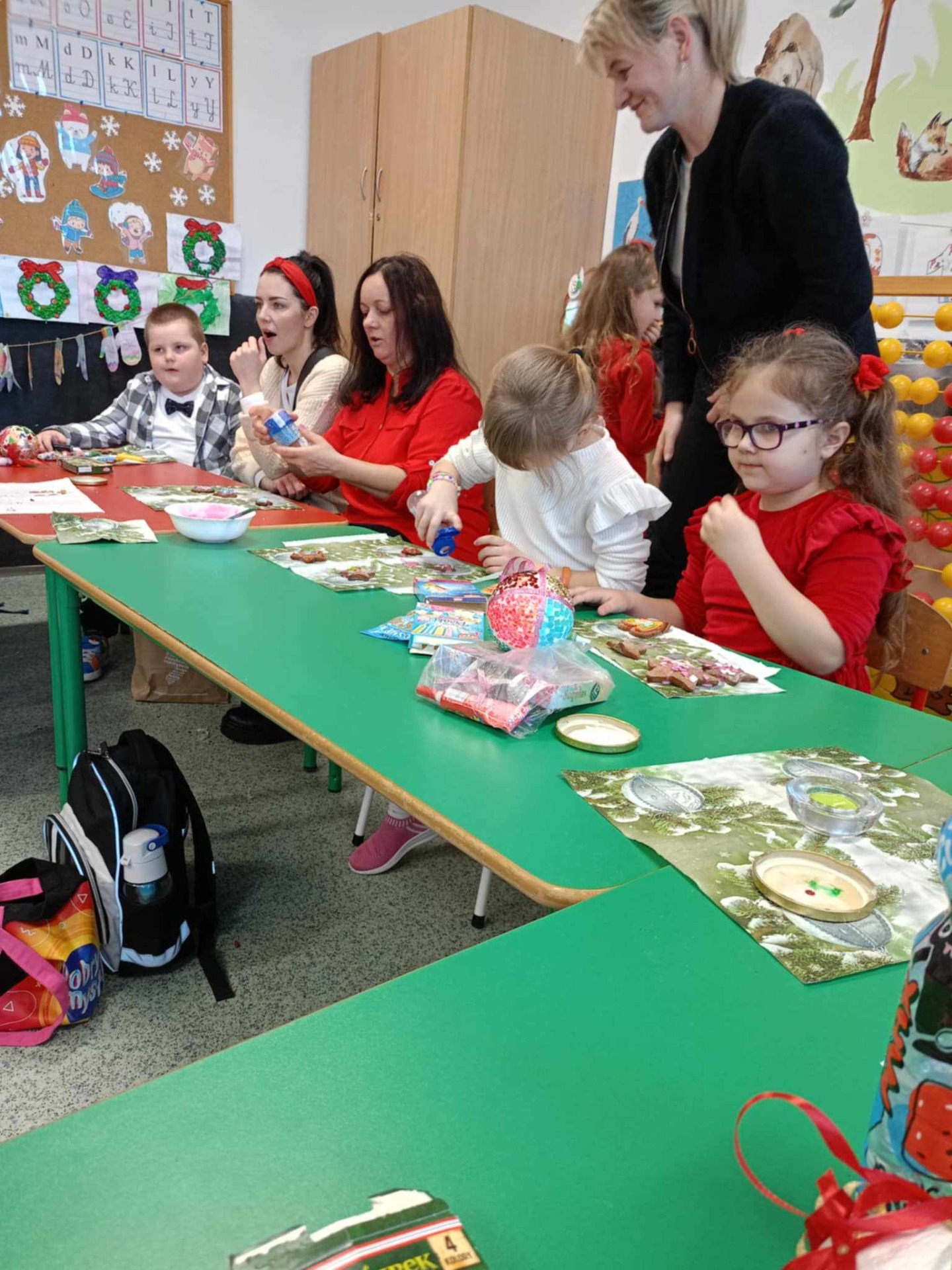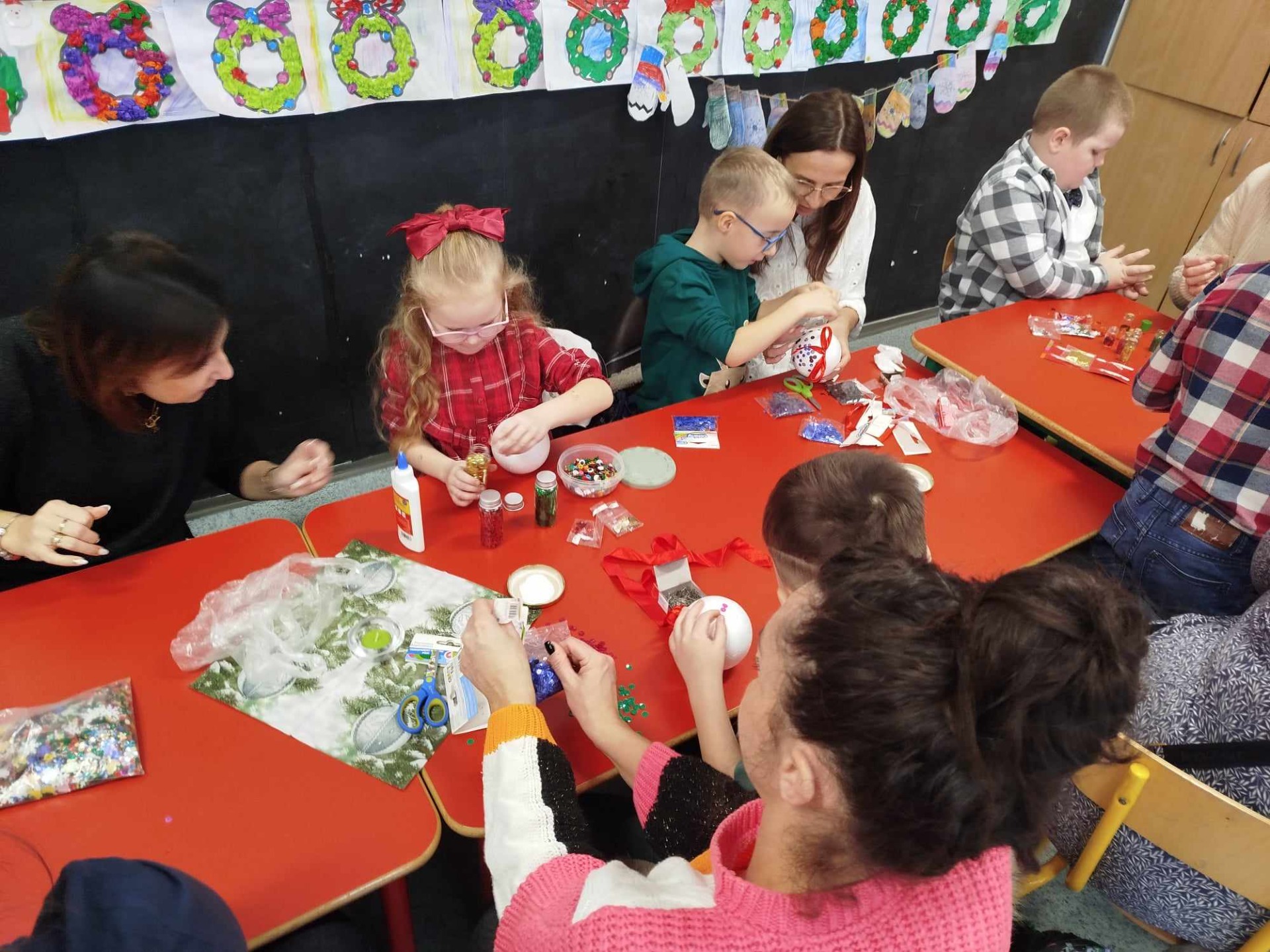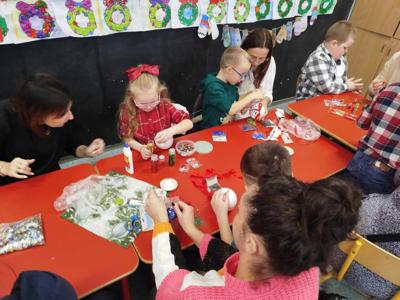 Okres przedświąteczny sprzyja kreatywności, stąd pomysł na warsztaty plastyczne z rodzicami w grupie 6-latków. Spotkanie rozpoczęło się występem dzieci, które recytowały wiersze o tematyce bożonarodzeniowej, a także wspólnym śpiewaniem kolęd. W czasie warsztatów rodzice wraz z pociechami tworzyli różne ozdoby świąteczne m.in bombkę ozdabianą cekinami czy łańcuchy choinkowe. Technika okazała się prostą do opanowania a warsztaty były inspiracją do wykonania prezentów i dekoracji bożonarodzeniowych. Na zakończenie dzieci wspólnie ozdobiły pierniczki. Ten magiczny czas pozwolił rodzicom i dzieciom rozwinąć potencjał oraz spędzić czas w radosnej i twórczej atmosferze. Serdecznie podziękowania dla rodziców za poświęcony czas i zaangażowanie w życie szkoły.