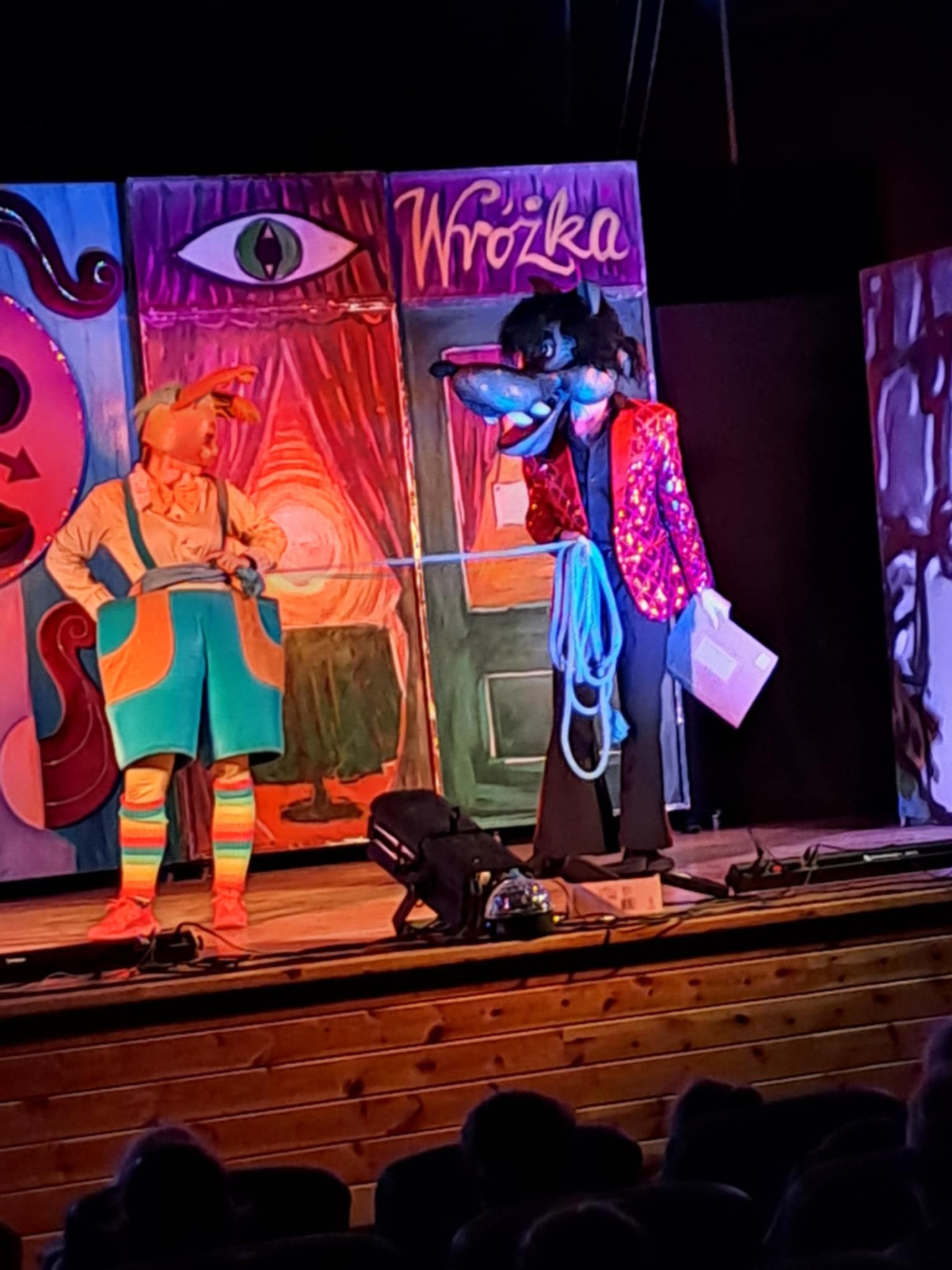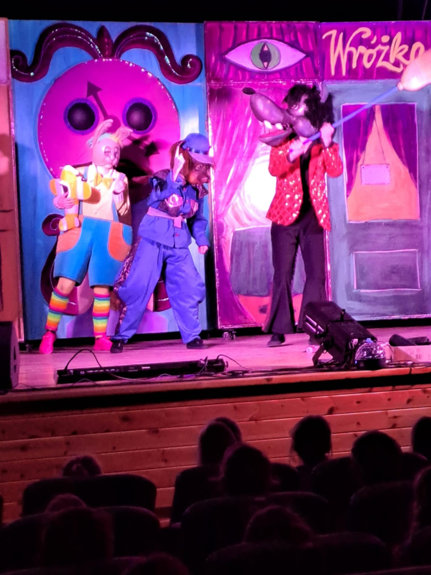 Przedszkolaki z grup 5-latków i 0B w dniu 13 lutego 2025 r. wybrały się na spektakl w wykonaniu teatru „Art-Re” z Krakowa. Bajka oparta była na znanym i popularnym rosyjskim filmie animowanym pt. „Czekaj, ja ci pokaże”. W nieustannych gonitwach bohaterowie widowiska - tytułowi Wilk oraz Zając przeżywają wiele zabawnych przygód, z których Zając zawsze wychodzi cało.