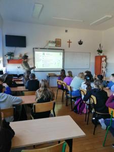 W przygotowaniu do konkursu na pewno pomogła prelekcja, zorganizowana dla naszych uczniów i poprowadzona przez specjalistę ds. edukacji ekologicznej i promocji ZPKWŁ - Przedborski Park Krajobrazowy.