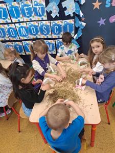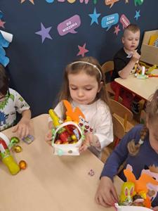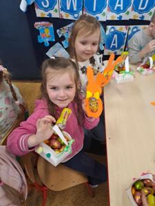 Święta Wielkanocne są bardzo radosnym czasem, na który z wytęsknieniem oczekują zarówno dzieci, jak i dorośli. Są to święta rodzinne, pełne tradycji i zwyczajów, które chcemy przekazać młodszym pokoleniom. W dniu 3 kwietnia w grupie 5-latków odbyły się warsztaty wielkanocne z udziałem dzieci i rodziców. Na zajęciach przedszkolaki z różnorodnych materiałów plastycznych wykonały przepiękne koszyczki, wianuszki i palmę wielkanocną. Dzięki talentom artystycznym rodziców, dzieci miały okazję poznać wiele technik plastycznych oraz ciekawych wzorów. Warsztaty wielkanocne dały możliwość uczestnikom twórczego przygotowania się do Świąt Wielkanocnych i stworzenia własnoręcznej ozdoby, która dla dziecka jest źródłem satysfakcji. Dziękuje rodzicom za obecność, udział w grupowym przedsięwzięciu oraz wspólnie spędzony radosny czas.