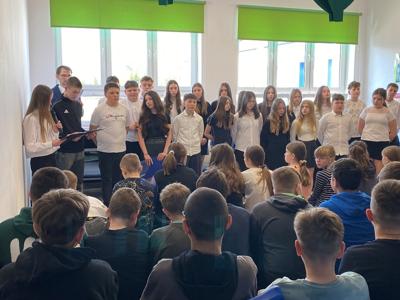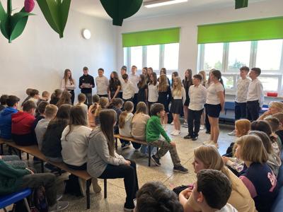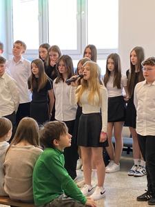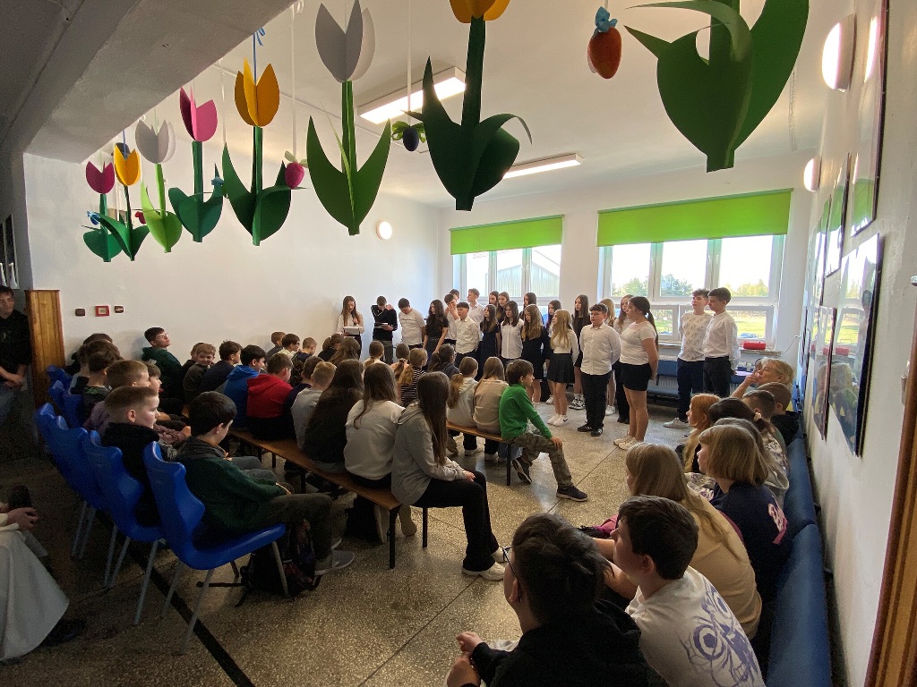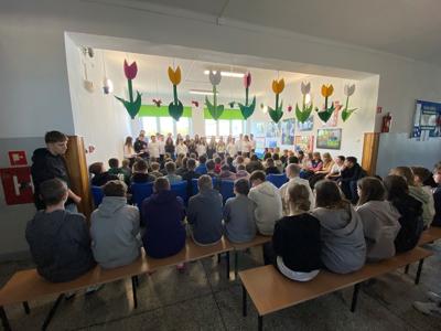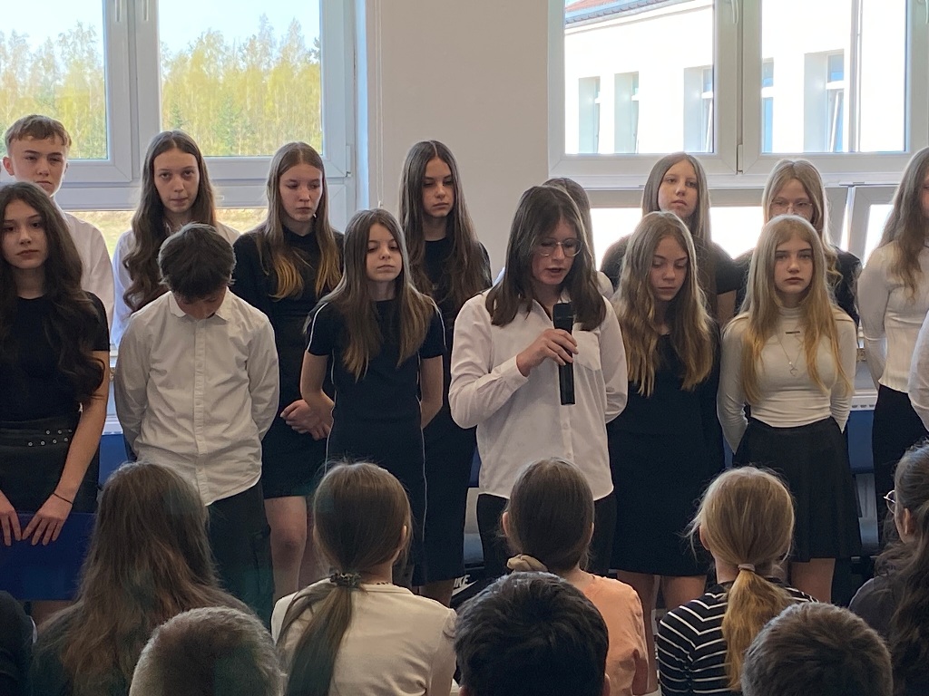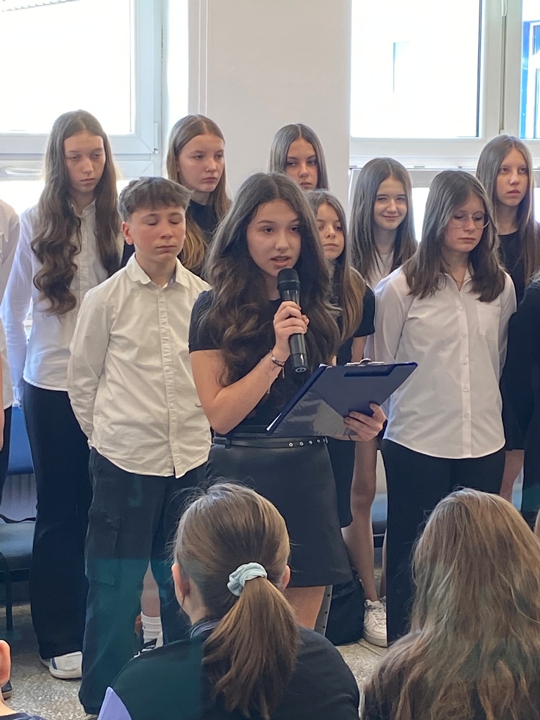 14 kwietnia 2025 roku w naszej szkole odbyła się uroczysta akademia z okazji 85. rocznicy Zbrodni Katyńskiej. Wiosną 1940 roku funkcjonariusze NKWD zamordowali prawie 22 tysiące polskich jeńców wojennych, głównie oficerów. Ciała Polaków pochowano w masowych, bezimiennych grobach położonych nieopodal Katynia, Miednoje oraz Charkowa. Symbolem bezwzględności władz sowieckich stał się szczególnie las katyński, gdyż to właśnie tam po raz pierwszy odkryto ciała polskich żołnierzy, którzy zostali zabici za zgodą przywódcy ZSRS – Józefa Stalina. W powojennej Polsce rządzący, zależni od przykazów płynących z Moskwy, dążyli do tego, by pamięć o prawdziwych winowajcach została zapomniana. Dopiero po upadku komunizmu Polacy mogli otwarcie mówić o osobach odpowiedzialnych za śmierć polskich obywateli.