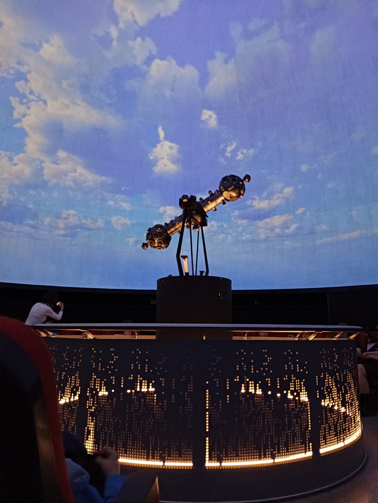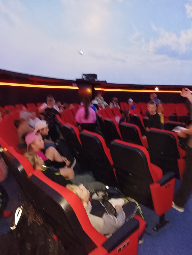 Kolejnym punktem wycieczki był seans w Planetarium. Wszyscy z zapartym tchem oglądaliśmy film pt. „Cudowna podróż”. Dostarczył on wielu wrażeń, a także pogłębił wiedzę o gwiazdach i planetach.
