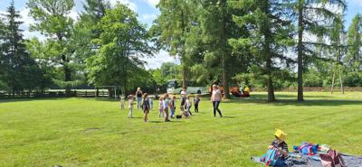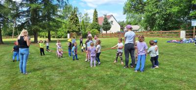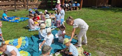17 czerwca dzieci z grup: trzylatków, czterolatków i z grupy 0a w ramach akcji Dzień Pustej Klasy pojechały na Leśny Piknik do Punktu Edukacyjnego Podświerk Nadleśnictwa Radomsko. Dzieci wytropiły ukryty wśród drzew skarb, wykonały pracę plastyczną Szukamy Skarbów Przyrody, a potem wesoło bawiły się korzystając z pięknej pogody. Były też pieczone kiełbaski, zawody w przeciąganiu liny, puszczanie baniek mydlanych i zabawy z piłką. Wszyscy wrócili bardzo zmęczeni, ale roześmiani i zadowoleni.
