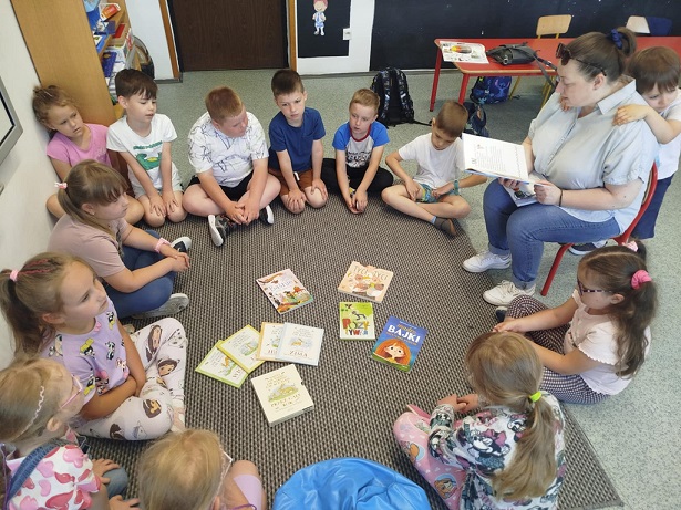 W oddziałach przedszkolnych zostały zorganizowane spotkania czytelnicze z rodzicami. Nawiązano również współpracę z Gminną Biblioteką Publiczną w Wielgomłynach. Podczas zajęć czytelniczych przedszkolaki brały udział w quizach dotyczących czytanej książki, wykonywały prace plastyczne na których można było zobaczyć ulubionych bohaterów literackich. Wychowawcy grup pokazali rónież dzieciom, że czytanie nie musi być nudne, można czytać wszędzie- w klasie, na boisku i w wielu innych miejscach.