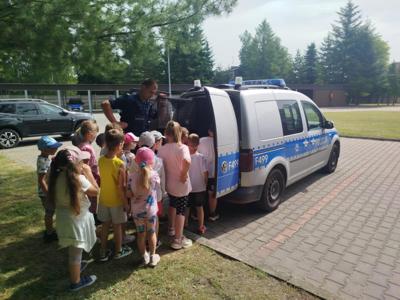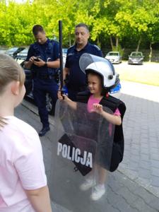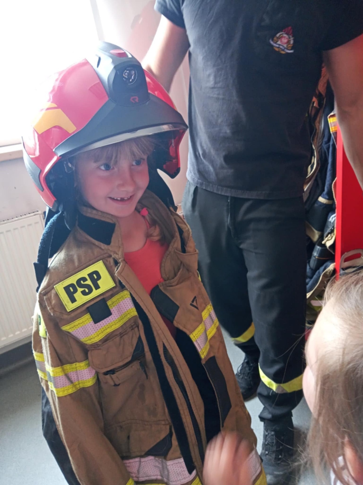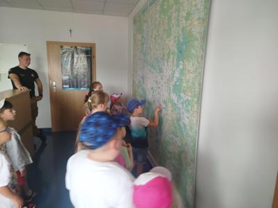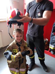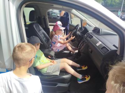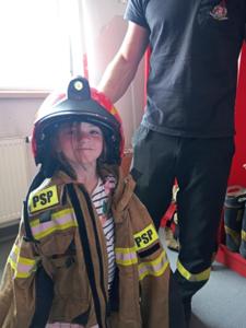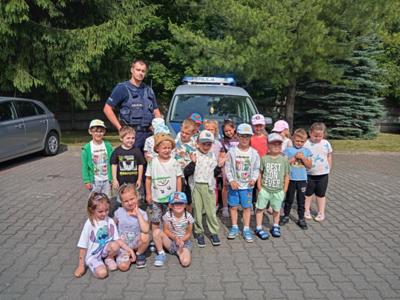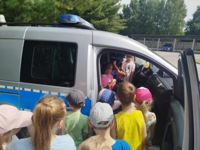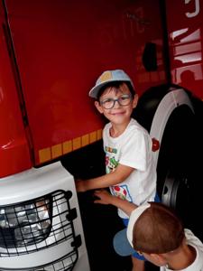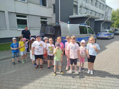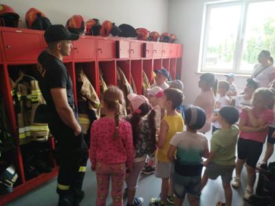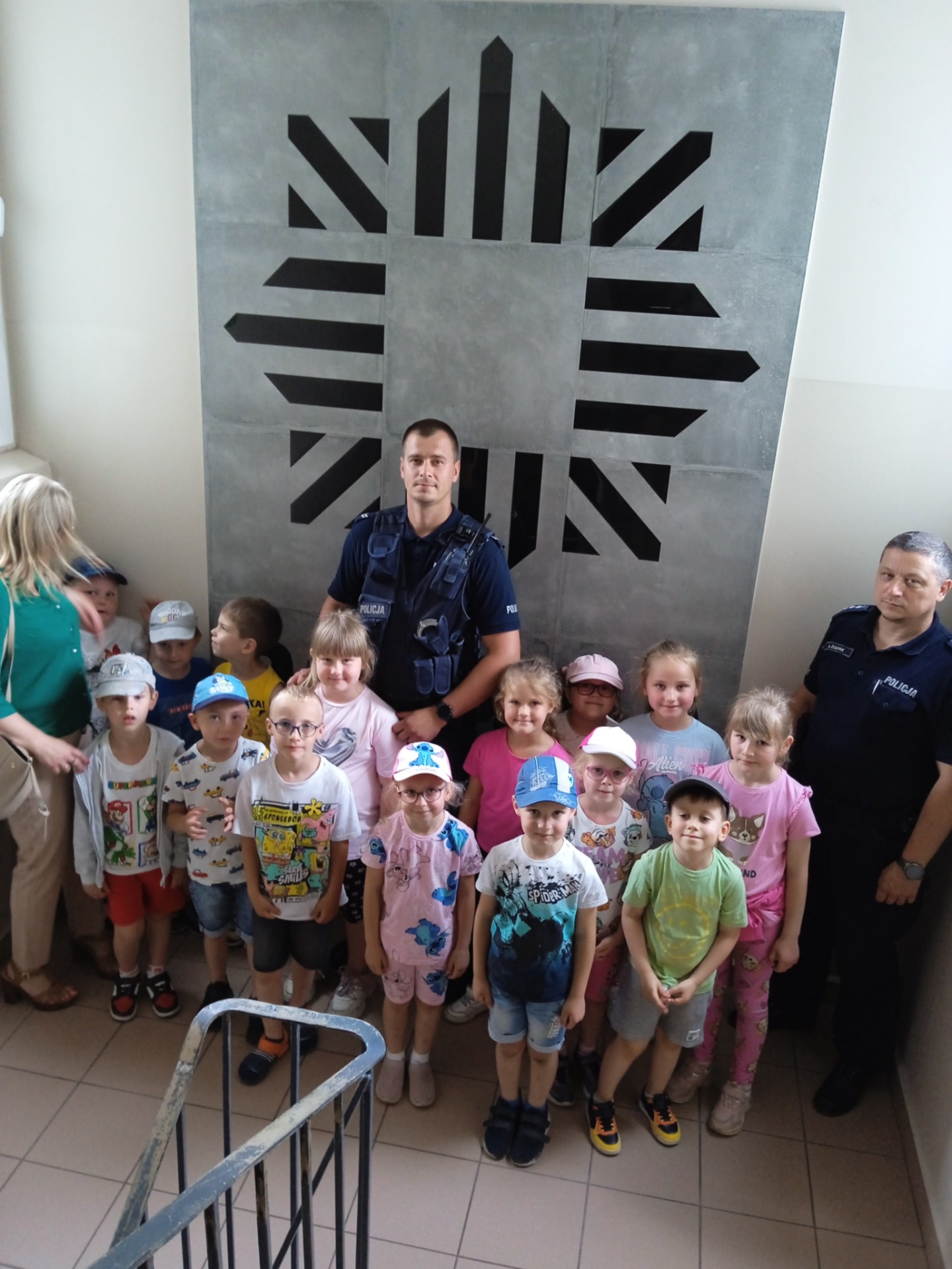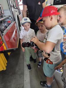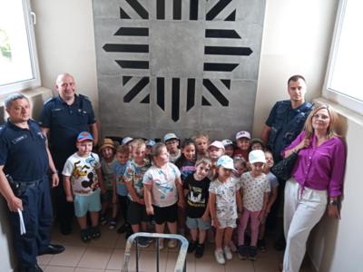 Dzieci uczestniczyły w krótkiej lekcji bezpieczeństwa, podczas której przypominano zasady bezpiecznego poruszania się po drodze, kontaktów z osobami obcymi, a przede wszystkim otrzymały cenne rady jak należy spędzić bezpieczne wakacje. Następnym punktem wycieczki była wizyta w Komendzie Powiatowej Państwowej Straży Pożarnej, tam dzieci obejrzały wóz strażacki oraz sprzęt wykorzystywany podczas akcji ratunkowych.