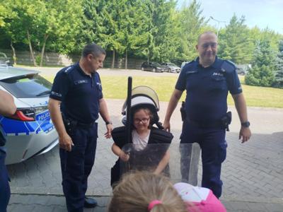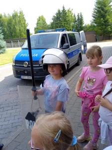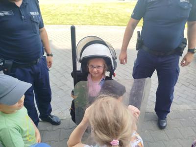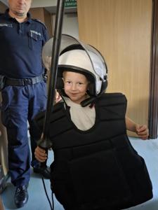 Podczas wizyty w Komendzie Powiatowej Policji przedszkolaki miały okazję poznać pracę funkcjonariuszy, w tym zadania dzielnicowego oraz technika kryminalistyki, zobaczyć wyposażenie służbowe tj. kamizelki kuloodporne, kajdanki i hełmy. Mogły również przymierzyć elementy munduru policjanta oraz posłuchać sygnałów dźwiękowych radiowozu.