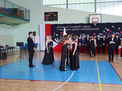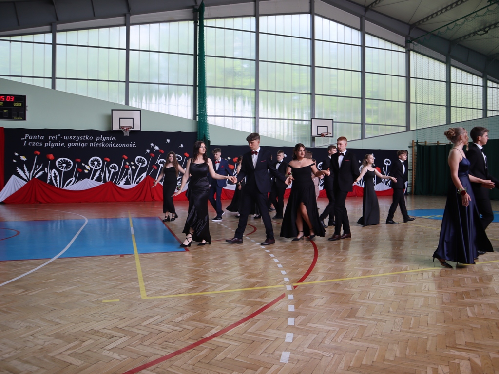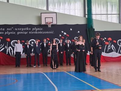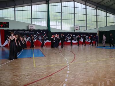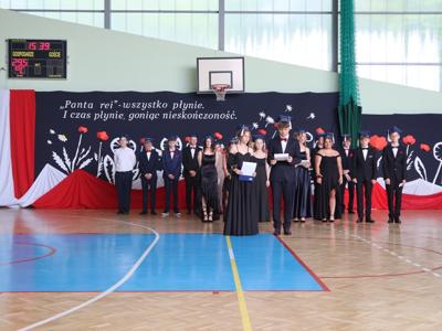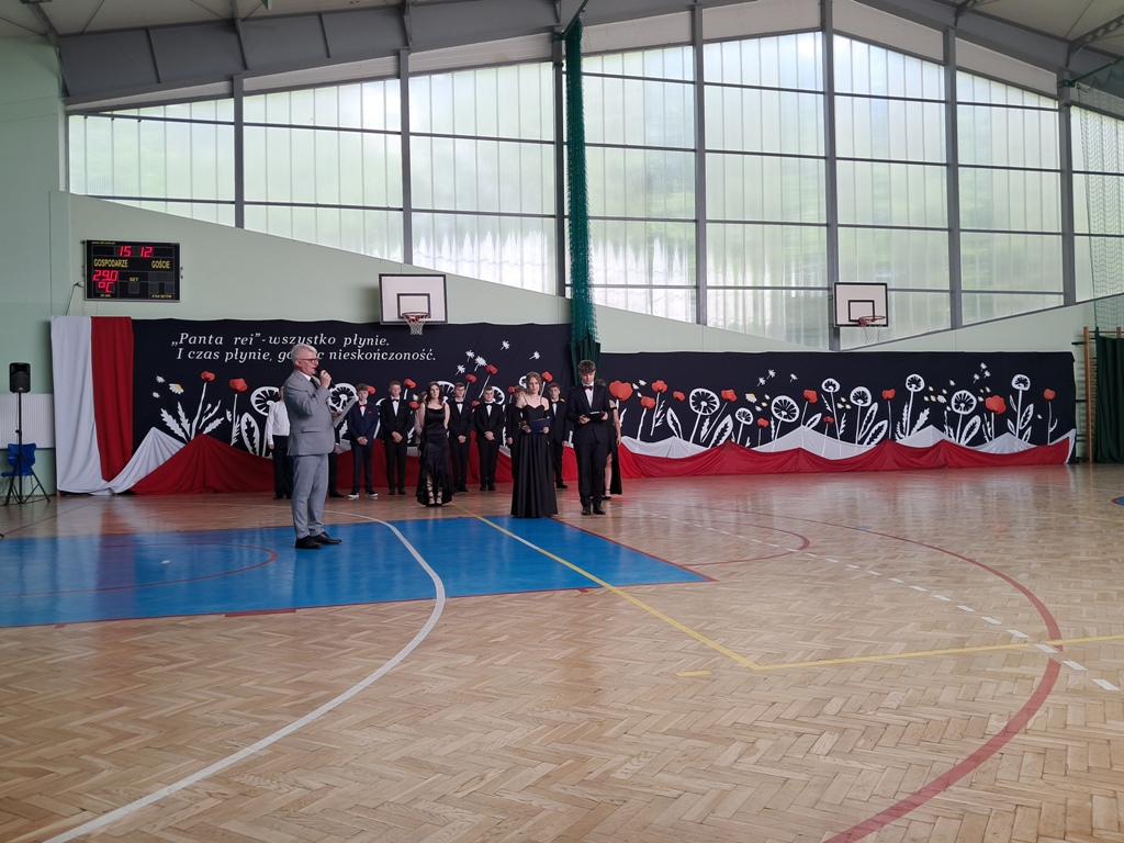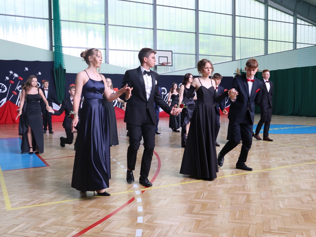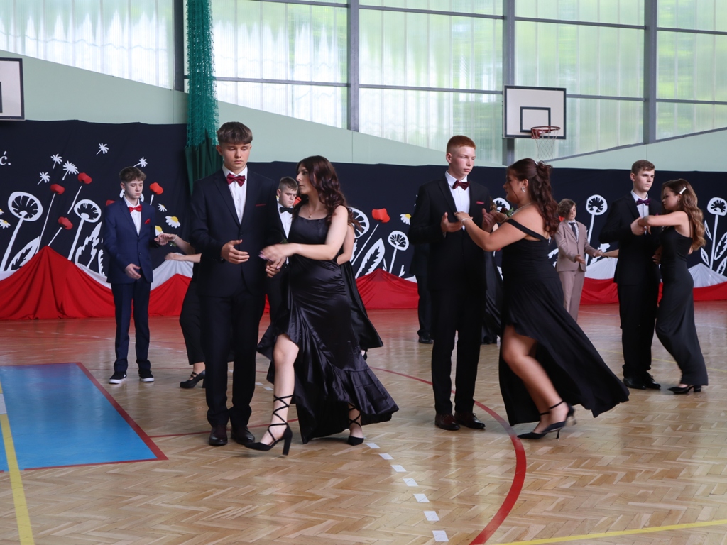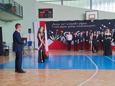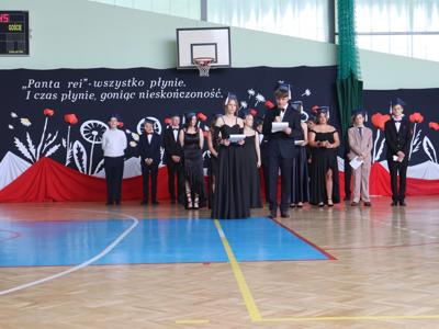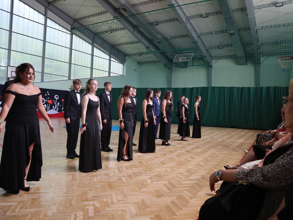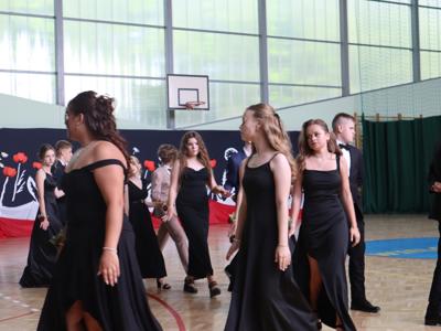 Uroczystość rozpoczęła się od Poloneza w wykonaniu absolwentów. Wszyscy widzowie podziwiali układy taneczne oraz nienaganną prezencję naszych ósmoklasistów. Następnie w przemówieniu Pan Dyrektor z dumą podziękował im za ich wysiłek, determinację oraz wkład w życie szkoły. Nie zabrakło również serdecznych słów skierowanych do wychowawców, nauczycieli i rodziców, którzy przez lata wspierali młodzież na ich edukacyjnej ścieżce. Podziękowania trafiły również do przedstawicieli organu prowadzącego.
