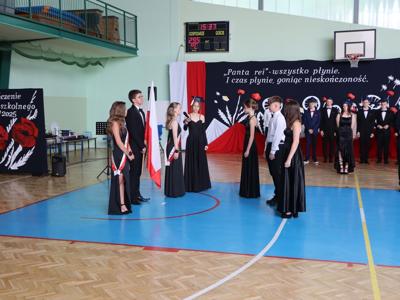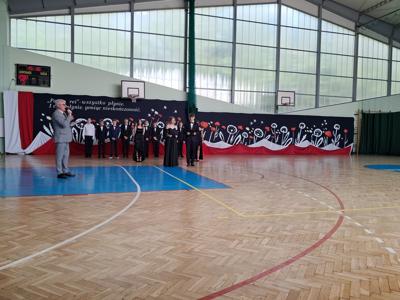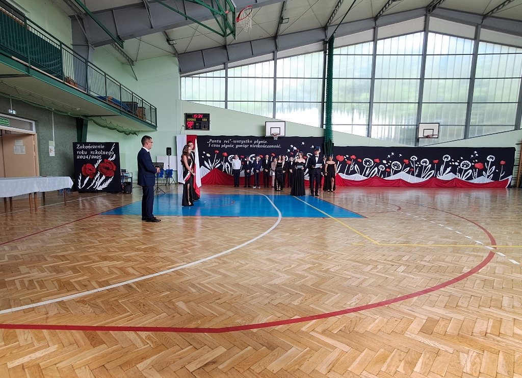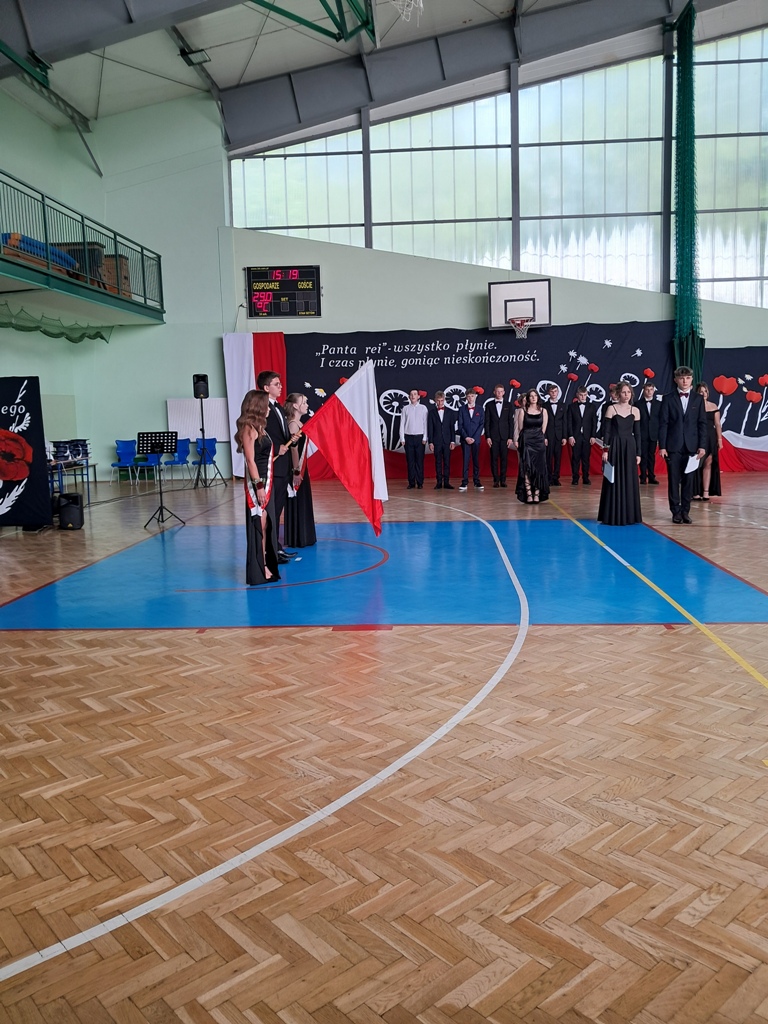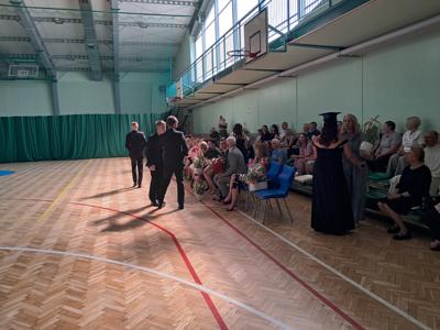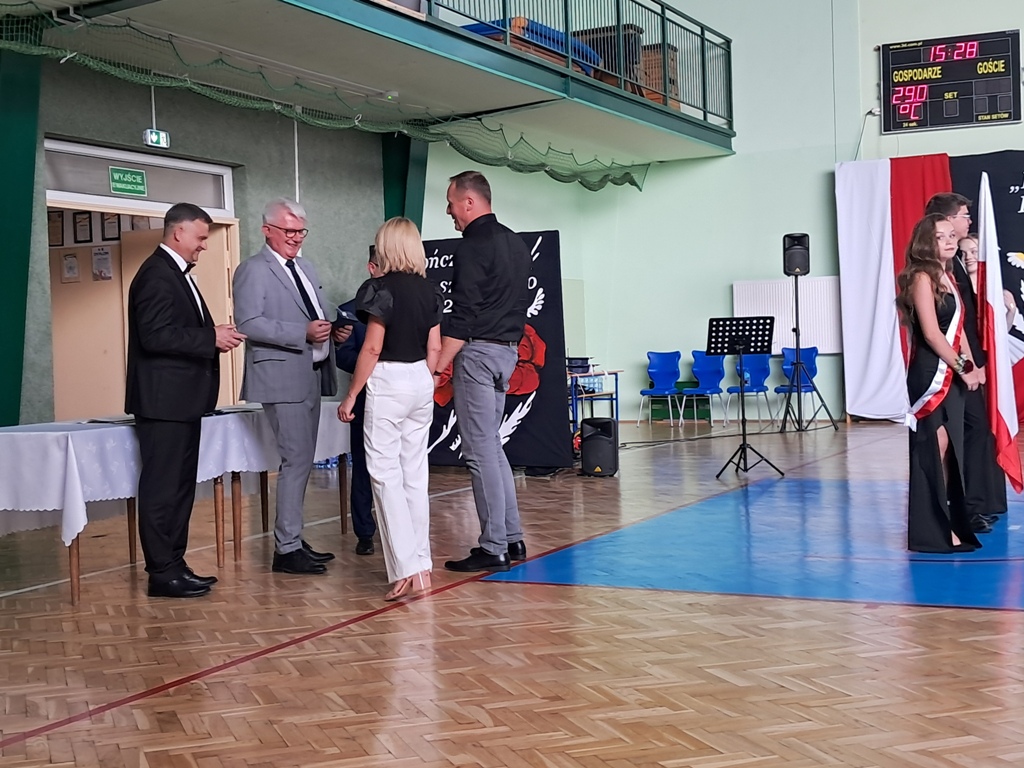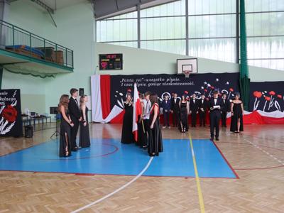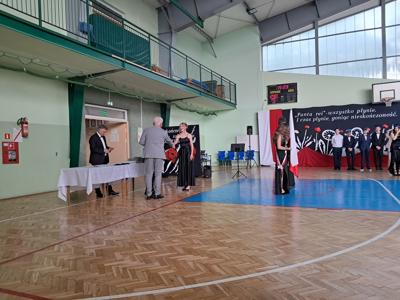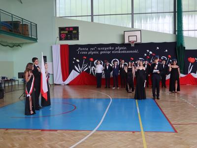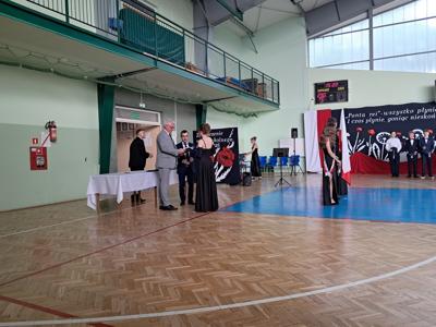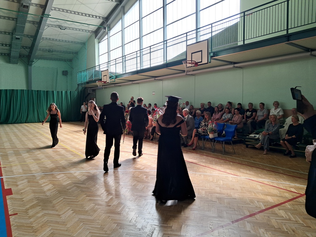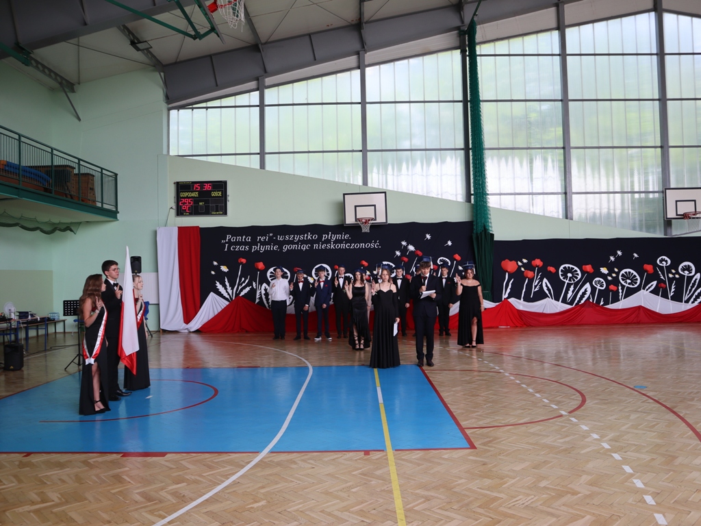 Uroczystość rozpoczęła się od Poloneza w wykonaniu absolwentów. Wszyscy widzowie podziwiali układy taneczne oraz nienaganną prezencję naszych ósmoklasistów. Następnie w przemówieniu Pan Dyrektor z dumą podziękował im za ich wysiłek, determinację oraz wkład w życie szkoły. Nie zabrakło również serdecznych słów skierowanych do wychowawców, nauczycieli i rodziców, którzy przez lata wspierali młodzież na ich edukacyjnej ścieżce. Podziękowania trafiły również do przedstawicieli organu prowadzącego.