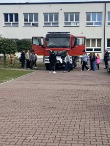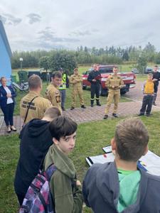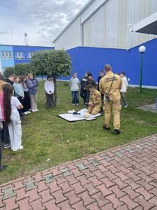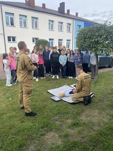 Po zakończonych ćwiczeniach uczniowie klas VI, VII i VIII mieli okazję uczestniczenia w praktycznej nauce udzielania pierwszej pomocy. Uczniowie sprawdzili swoje umiejętności w zakresie resuscytacji krążeniowo-oddechowej oraz zachowanie w czasie zadławienia. Strażacy zaprezenowali także wyposażenie ciężkiego samochodu ratowniczo-gaśniczego oraz jego zastosowanie. Dziękujemy Wam za pomoc w organizacji i przeprowadzeniu ćwiczeń oraz ciekawie przeprowadzone zajęcia.