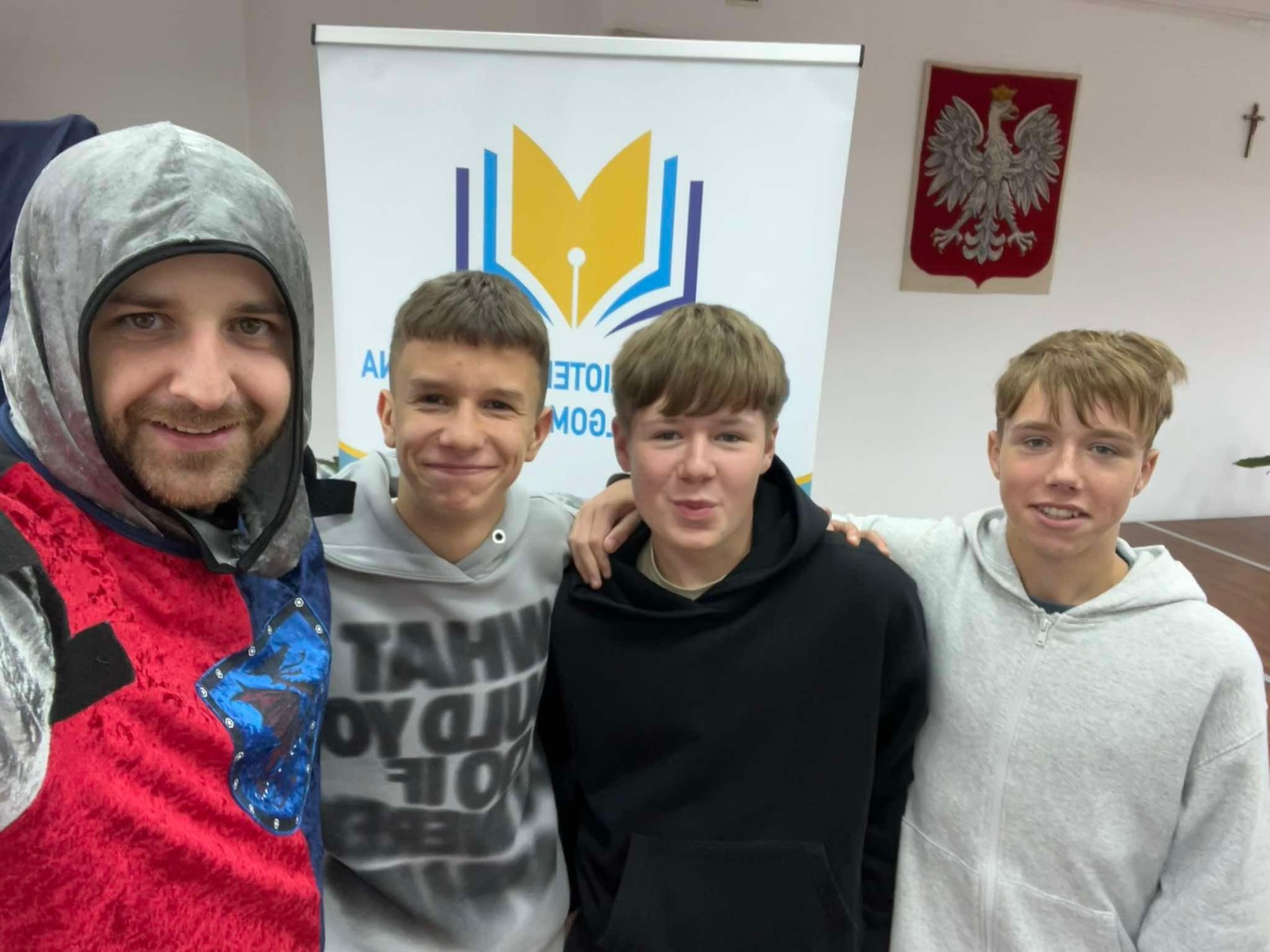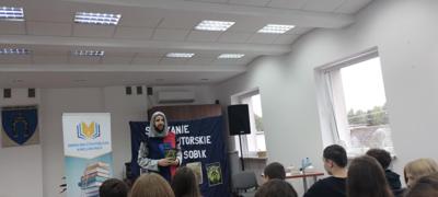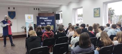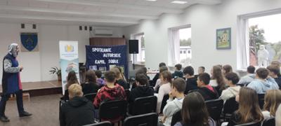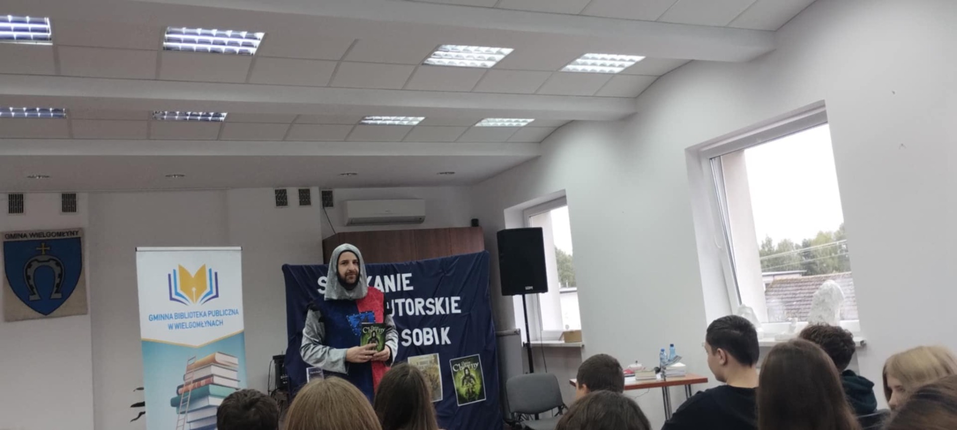 W dniu 23 września 2025 r. uczniowie klas VII oraz VIII wraz z opiekunami uczestniczyli w spotkaniu autorskim z Kamilem Sobikiem, pisarzem i pasjonatem historii.