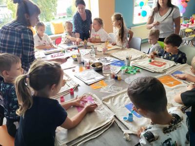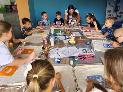 Z okazji Dnia Przedszkolaka grupa 5-latków wybrała się do Edu- Klocki w Radomsku, aby spędzić tam dzień na radosnych i twórczych zabawach. Dzieci z ogromnym zaangażowaniem budowały rozmaite konstrukcje z klocków, rozwijając swoją kreatywność i ucząc się współpracy w grupie. W programie wycieczki zaplanowane były również warsztaty plastyczne- malowania farbami na plecakach, które dostarczyły dzieciom wielu artystycznych wrażeń i pozwoliły stworzyć wyjątkowe, własnoręcznie zrobione pamiątki. Nie zabrakło wspólnych gier ruchowe, śmiechu i odpoczynek przy poczęstunku.