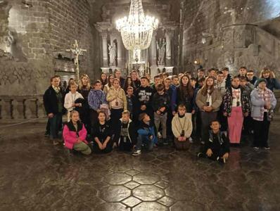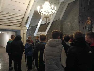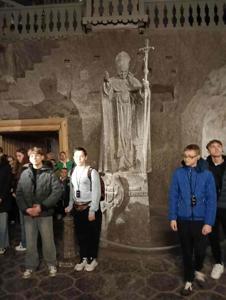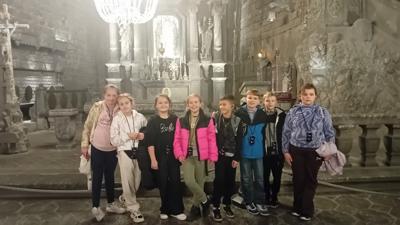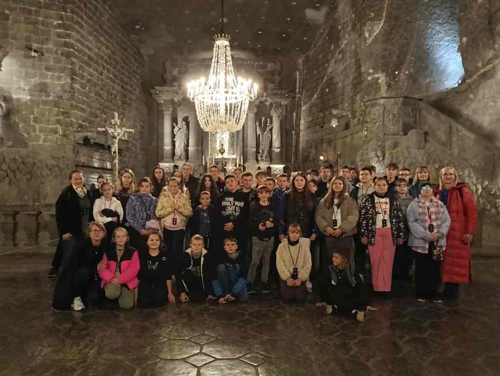 Dnia 7 października 2025 r. uczniowie naszej szkoły wraz z opiekunkami wybrali się na wycieczkę do Tarnowskich Gór i Wieliczki. Pierwszym punktem naszej wycieczki była Zabytkowa Kopalnia Srebra w Tarnowskich Górach, wpisana na Listę Światowego Dziedzictwa UNESCO. Podczas zwiedzania przewodnik opowiedział nam o historii wydobycia srebra w tym regionie. Zeszliśmy pod ziemię na głębokość około 40 metrów, gdzie mogliśmy zobaczyć dawne chodniki, komory górnicze oraz narzędzia używane przez górników. Podziemna trasa turystyczna wynosiła 1740 metrów. Jednym z najciekawszych elementów wycieczki był podziemny spływ łodziami na trasie 270 metrów, który pozwolił nam poczuć atmosferę pracy dawnych górników. Dowiedzieliśmy się także, jak wyglądała wentylacja kopalni i jak trudna była praca pod ziemią.