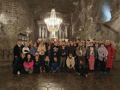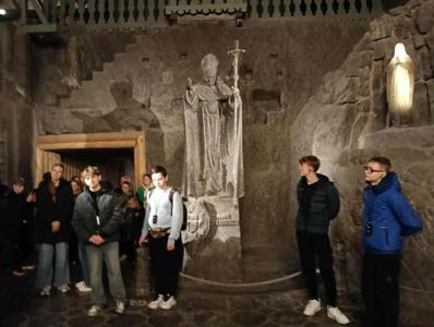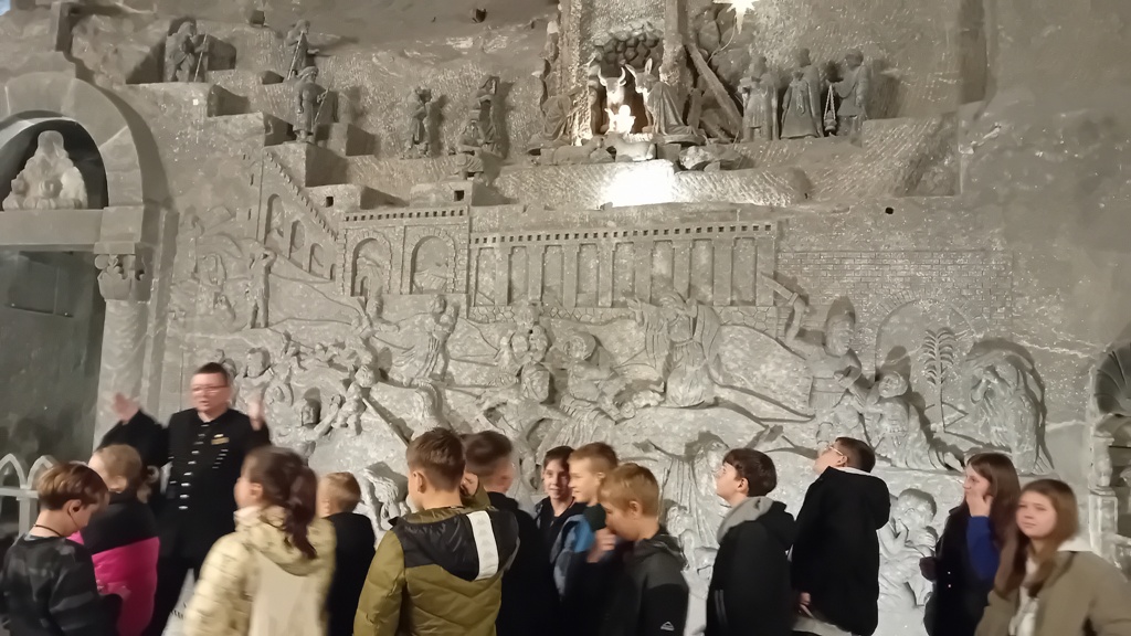 Drugim etapem naszej podróży była słynna Kopalnia Soli w Wieliczce, również wpisana na Listę UNESCO. Zwiedzanie rozpoczęło się zejściem po długich schodach na głębokość ponad 100 metrów. W kopalni podziwialiśmy piękne komory solne, rzeźby z soli, żyrandole, a także słynną Kaplicę św. Kingi, wykutą w soli przez górników. Przewodnik opowiadał o historii wydobycia soli, tradycjach górniczych i życiu ludzi pracujących w kopalni. Widzieliśmy też podziemne jeziora i wystawę poświęconą dawnym technikom wydobycia.