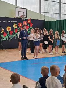 Pan Dyrektor-Leszek Wróblewski oraz Pani Wicedyrektor-Joanna Rembielak podziękowali wszystkim nauczycielom oraz pracownikom obsługi szkoły za trud wkładany w wychowanie i kształcenie dzieci życząc jednocześnie satysfakcji i radości z wykonywanej pracy, a także dalszych sukcesów. Wręczyli także nagrody nauczycielom.