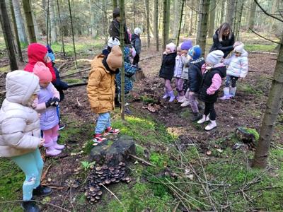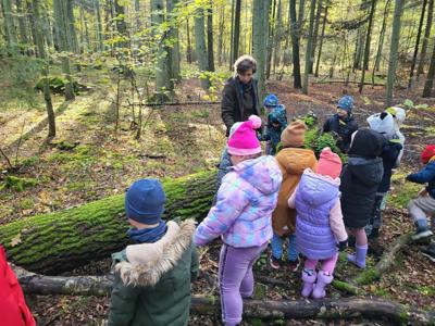 Wyjątkowe zajęcia w plenerze były dla dzieci bardzo atrakcyjną i rozwijającą formą edukacyjną. Spacer stał sie prawdziwą leśną przygodą, pełną radości i odkrywania tajemnic przyrody.