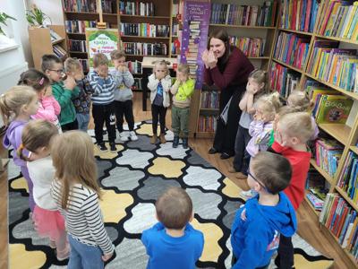 Podczas zajęć dzieci wysłuchały opowieści o przygodach Leona i wspólnie zastanawiały się, co to znaczy być zdziwionym. Przedszkolaki rozpoznawały emocję na ilustracjach, naśladowały miny bohatera.