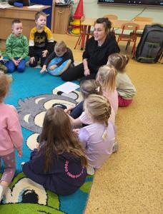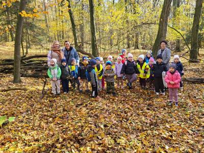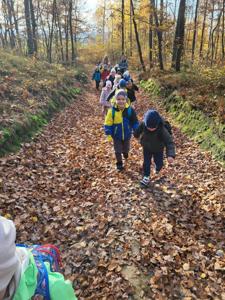 W ramach realizacji ogólnopolskiego projektu „Tu jest mój dom” dzieci z grupy przedszkolnej 5-latków wybrały się na wycieczkę na Górę Chełmo, aby poznać piękno swojej najbliższej okolicy i związane z nią legendy. Dzieci z ogromnym zainteresowaniem wysłuchały legendy o kowalu i śpiących rycerzach, którzy w podziemiach góry czekają na moment, gdy znów będą mogli stanąć w obronie ojczyzny.