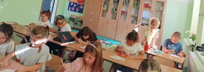 Na lekcji odbyło się krótkie rysowanie według instrukcji- tym razem dzieci tworzyły mapę myśli związaną z Warszawą na której zamieszczały informacje przekazane podczas lekcji.