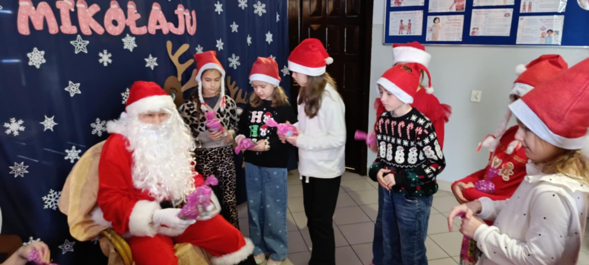 Dzięki wsparciu Rady Rodziców, która sfinansowała prezenty, każdy uczeń mógł otrzymać mikołajkowy podarunek. Serdecznie dziękujemy wszystkim rodzicom za wpłaty – to Wasze zaangażowanie sprawiło, że ten dzień stał się tak wyjątkowy i pełen świątecznej magii. Do zobaczenia za rok, Święty Mikołaju!