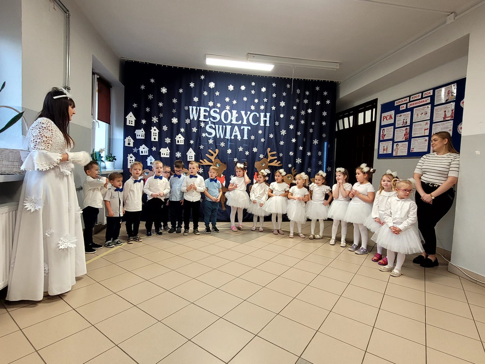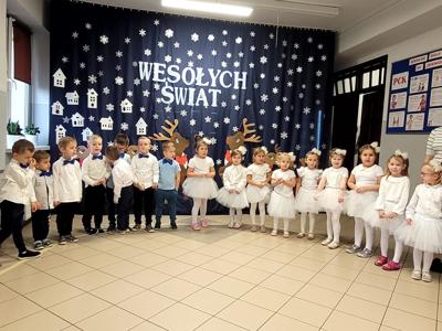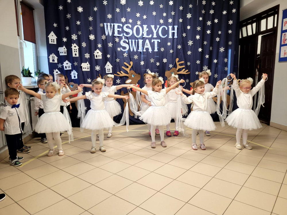 W grupie 4-latków odbyły się radosne warsztaty świąteczne z udziałem rodziców, które wprowadziły wszystkich w wyjątkowy, zimowo-świąteczny nastrój. Wydarzenie rozpoczęło się od przedstawienia zimowego pt. „Poszukiwanie zimy” w wykonaniu dzieci, które z dumą zaprezentowały swoje umiejętności przed zgromadzonymi gośćmi.