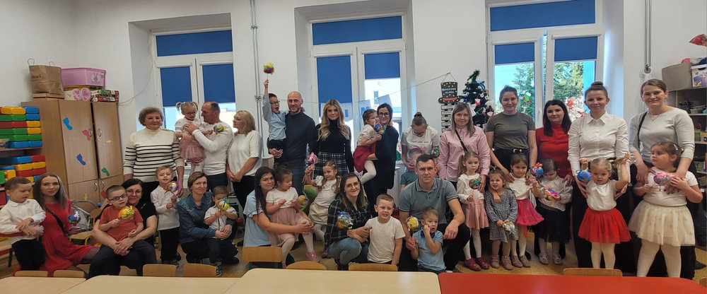 Na zakończenie warsztatów dzieci wraz z rodzicami wykonały ozdoby choinkowe – bombki, które będą piękną pamiątką wspólnie spędzonego czasu. Spotkanie było doskonałą okazją do integracji, wspólnej zabawy oraz budowania świątecznej atmosfery w naszej grupie.
