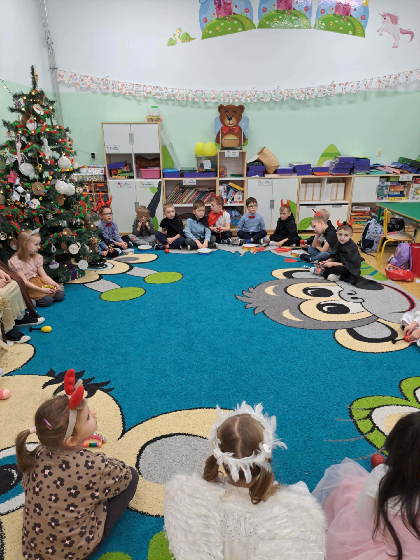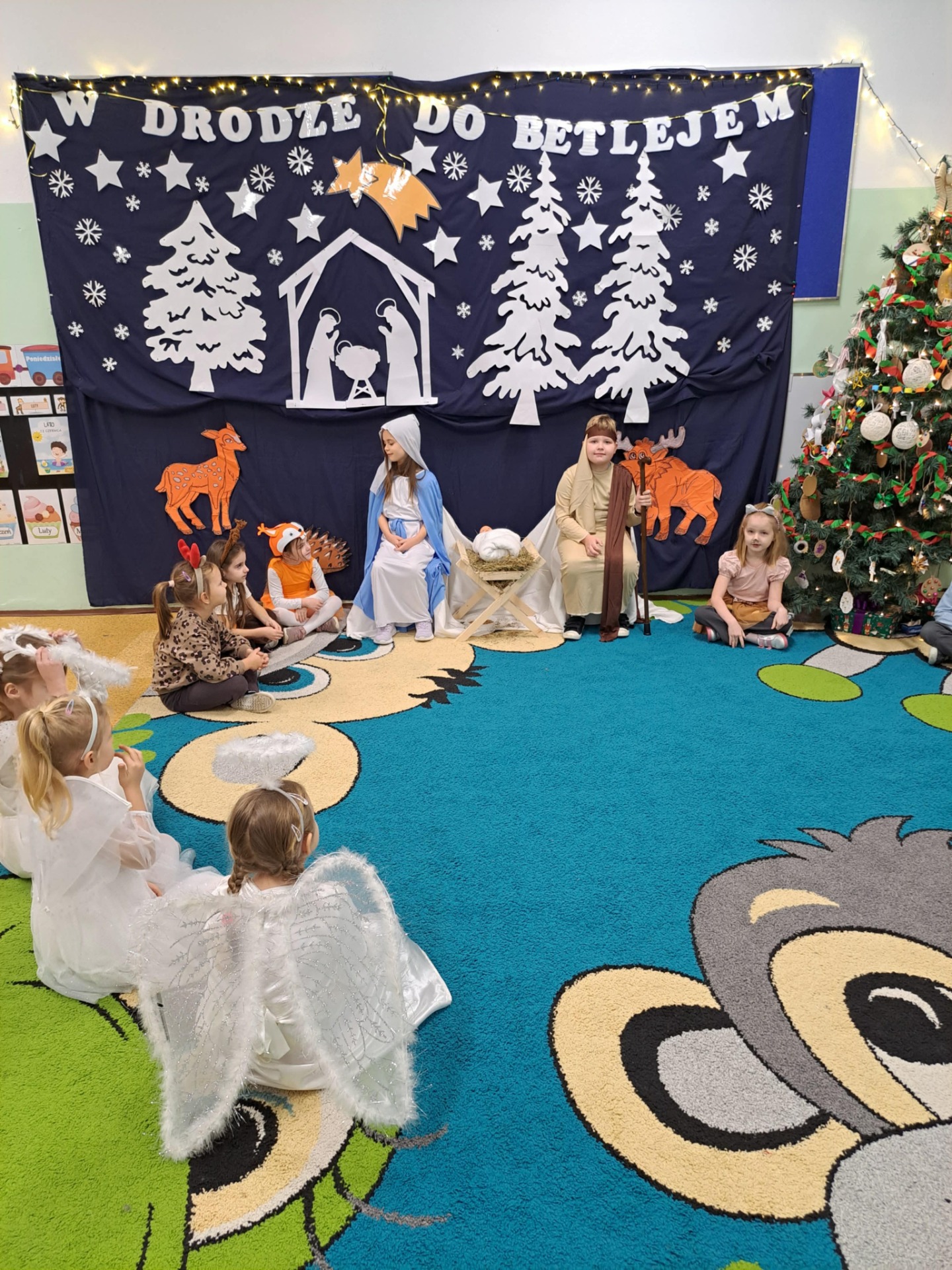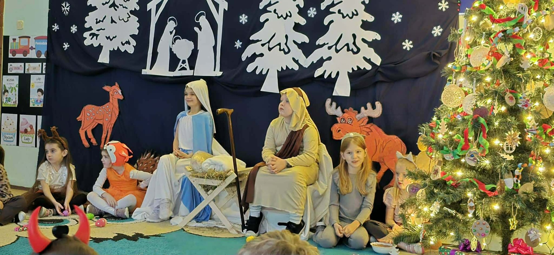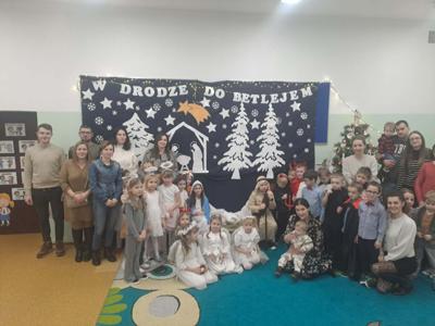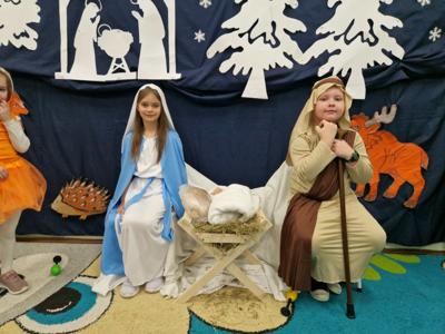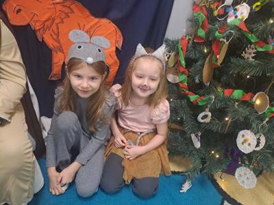 W dniu 16 grudnia 2025 r. w grupie 6-latków odbyły się jasełka pod tytułem „Boże Narodzenie w leśnej stajence”. Celem przedstawienia było wprowadzenie dzieci i rodziców w świąteczny nastrój, kultywowanie tradycji bożonarodzeniowych, rozwijanie zdolności artystycznych dzieci oraz wzmacnianie więzi emocjonalnych w grupie. Dzieci zaprezentowały historię narodzin Pana Jezusa w nietypowej leśnej scenerii. Obok Maryi, Józefa, aniołów i diabełków na scenie pojawiły się również zwierzęta leśne: sarenka, myszki, wiewiórki, które z radością witały Dzieciątko.