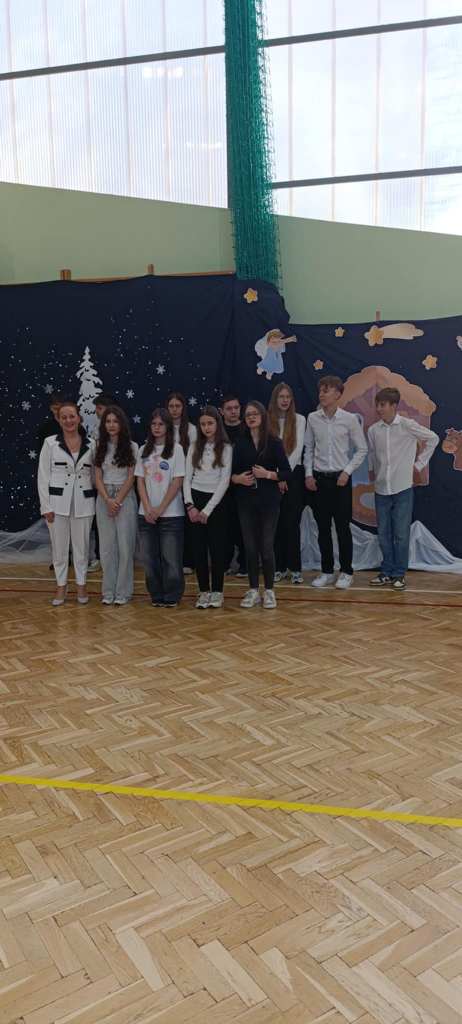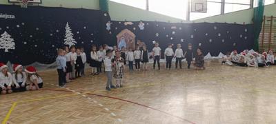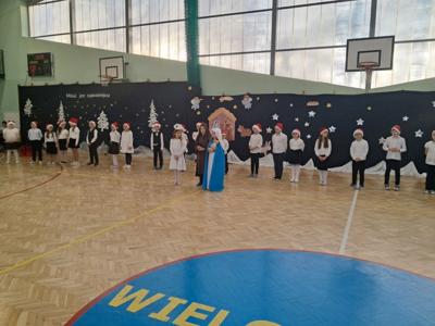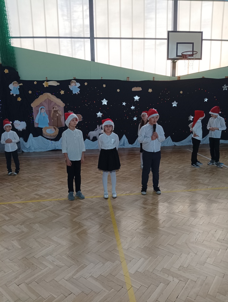 Po jasełkach odbył się koncert kolęd. Najważniejszym celem tego spotkania było kultywowanie polskiej tradycji śpiewania kolęd i pastorałek w okresie Bożego Narodzenia i nie tylko. Każdy utwór niósł ze sobą unikalną atmosferę, od wzruszeń po radość, przenosząc nas wprost do serca Świąt. Po występie głos zabrali pan i pani dyrektor, którzy złożyli wszystkim życzenia świąteczne. Następnie symbolicznie cała społeczność szkolna połamała się opłatkiem.