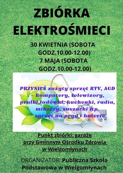 24 kwietnia 2022 Aktualności Ogłoszenie - Zbiórka elektrośmieci Ogłaszamy zbiórkę zużytego sprzętu elektrycznego i elektronicznego: - AGD tj. np. lodówki, pralki, czajniki elektryczne, tostery, odkurzacze; - ... Czytaj więcej