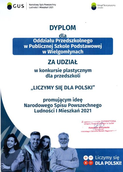 21 września 2021 Aktualności Sukces grupy 6-latków Dzieci z grupy 6-latków otrzymały dyplom za udział w ogólnopolskim konkursie plastycznym „Liczymy się dla Polski”, promującym idee Narodowego Spisu Powszechnego Ludności... Czytaj więcej